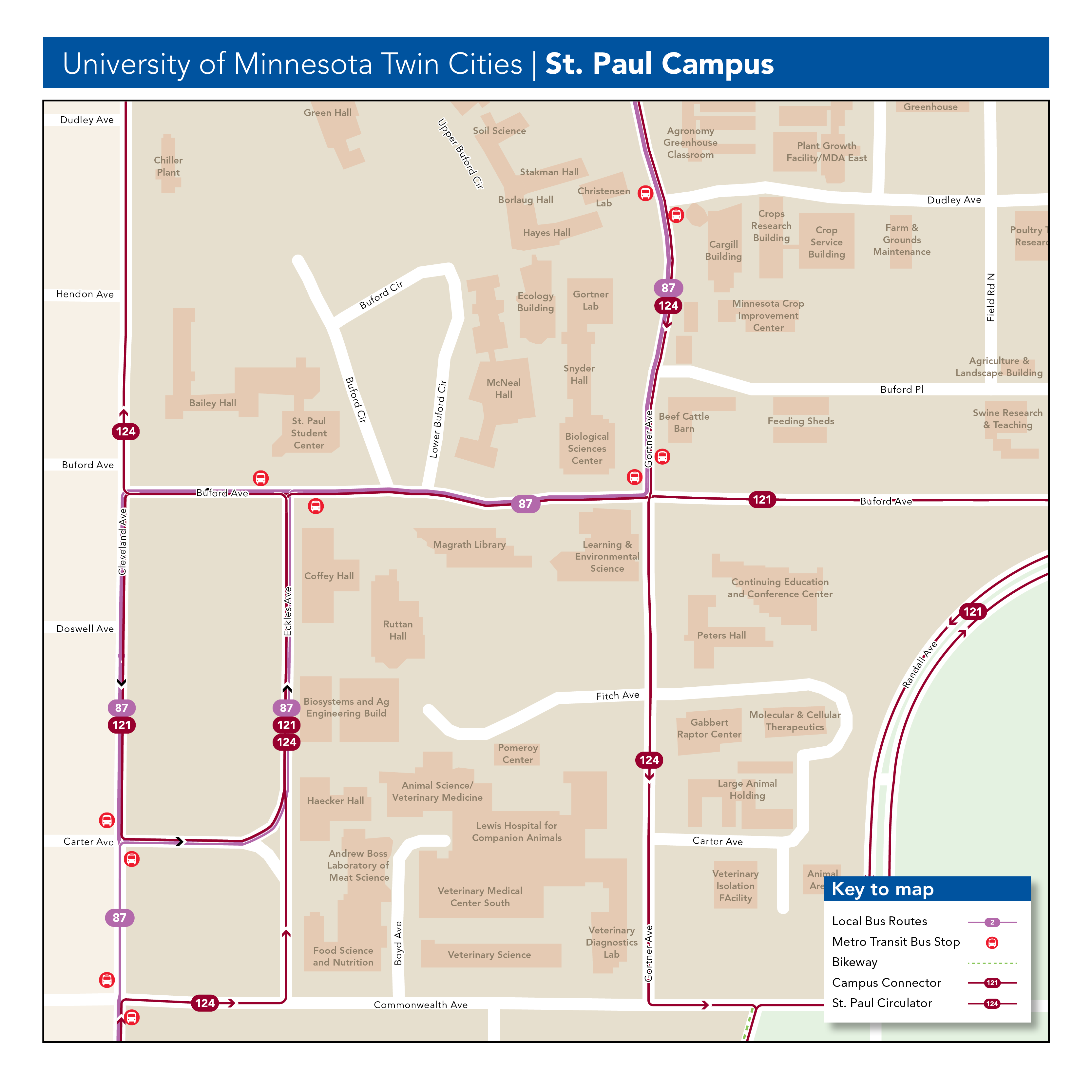 Routes serving the St. Paul campus